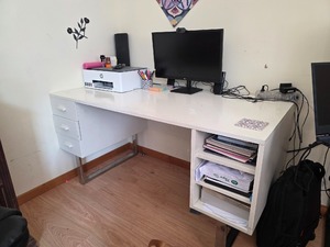 Secretária robusta em ótima qualidade, com 3 gavetas e 3 prateleiras. Excelente espaço e muito robusta. Dimensões: 150 cm (comprimento) x 75 cm (largura) x 75 cm (altura). Tem alguns detalhes na pintura mas continua funcional e resistente. Local de levantamento: Valbom, Gondomar.